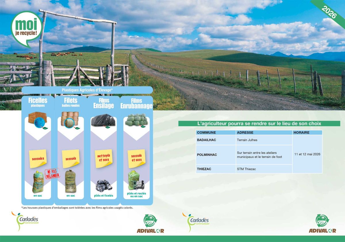Depuis plusieurs années, la Communauté de communes de Carladès, en partenariat avec Adivalor, organise une collecte dédiée aux plastiques agricoles afin d’accompagner les agriculteurs dans la gestion responsable de leurs déchets.