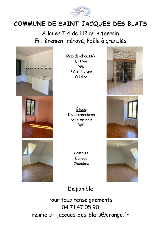COMMUNE DE SAINT-JACQUES-DES-BLATS A louer T4 de 112 m2 + terrain