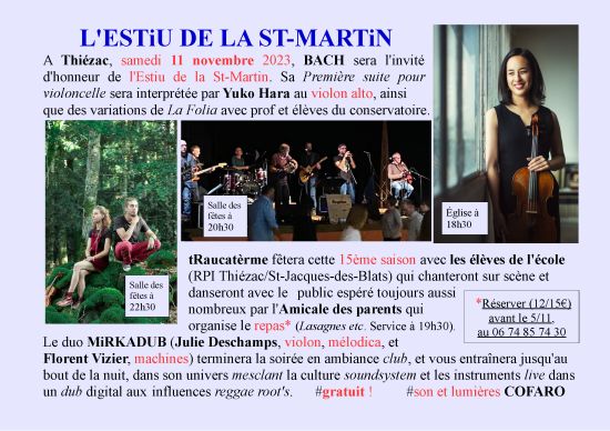 A Thiézac, samedi 11 novembre 2023, BACH sera l'invité d'honneur de l'Estiu de la St-Martin.