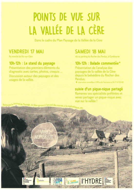 Vendredi 17 et samedi 18 mai, dans le cadre du Plan "Paysage de la Vallée de la Cère", des animations sont proposées pour partager nos points de vue sur la Vallée.