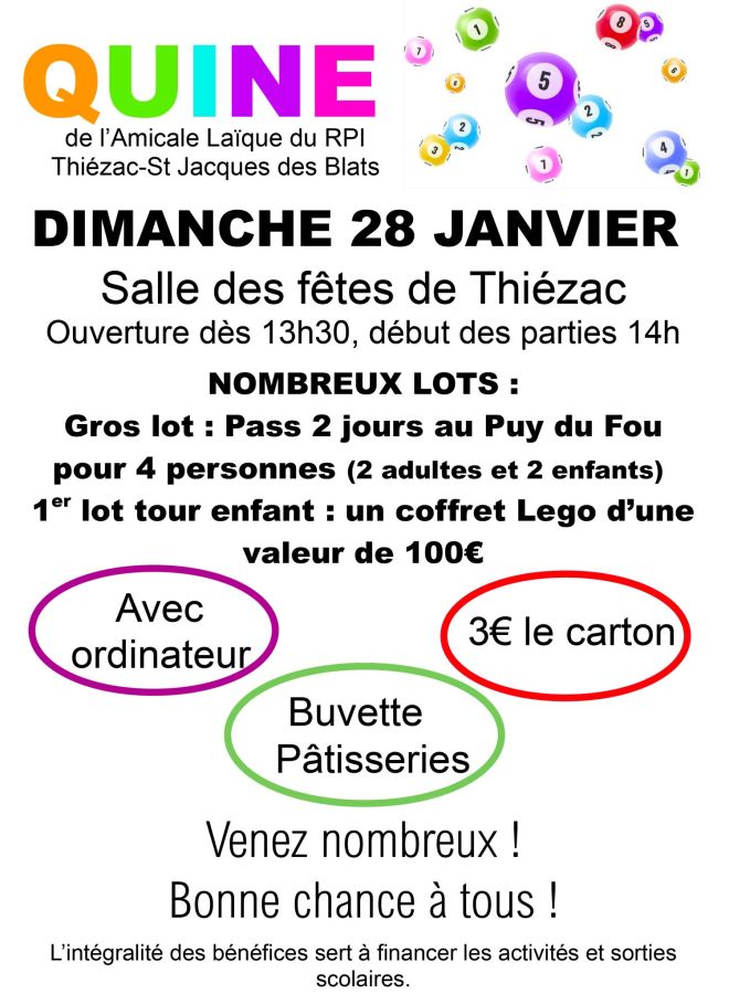 Dimanche 28 janvier à la Salle des Fêtes de Thiézac Ouverture dès 13h30, début des parties à 14h.