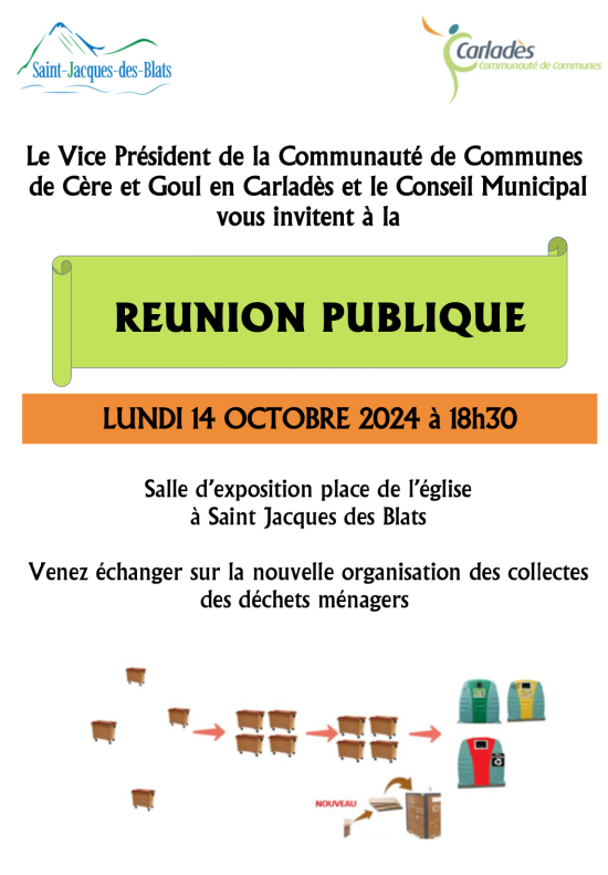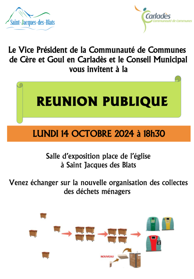 Le Vice Président de la Communauté de Communes de Cère et Goul en Carladès et le Conseil Municipal de Saint-Jacques-des-Blats vous invitent à une réunion publique :