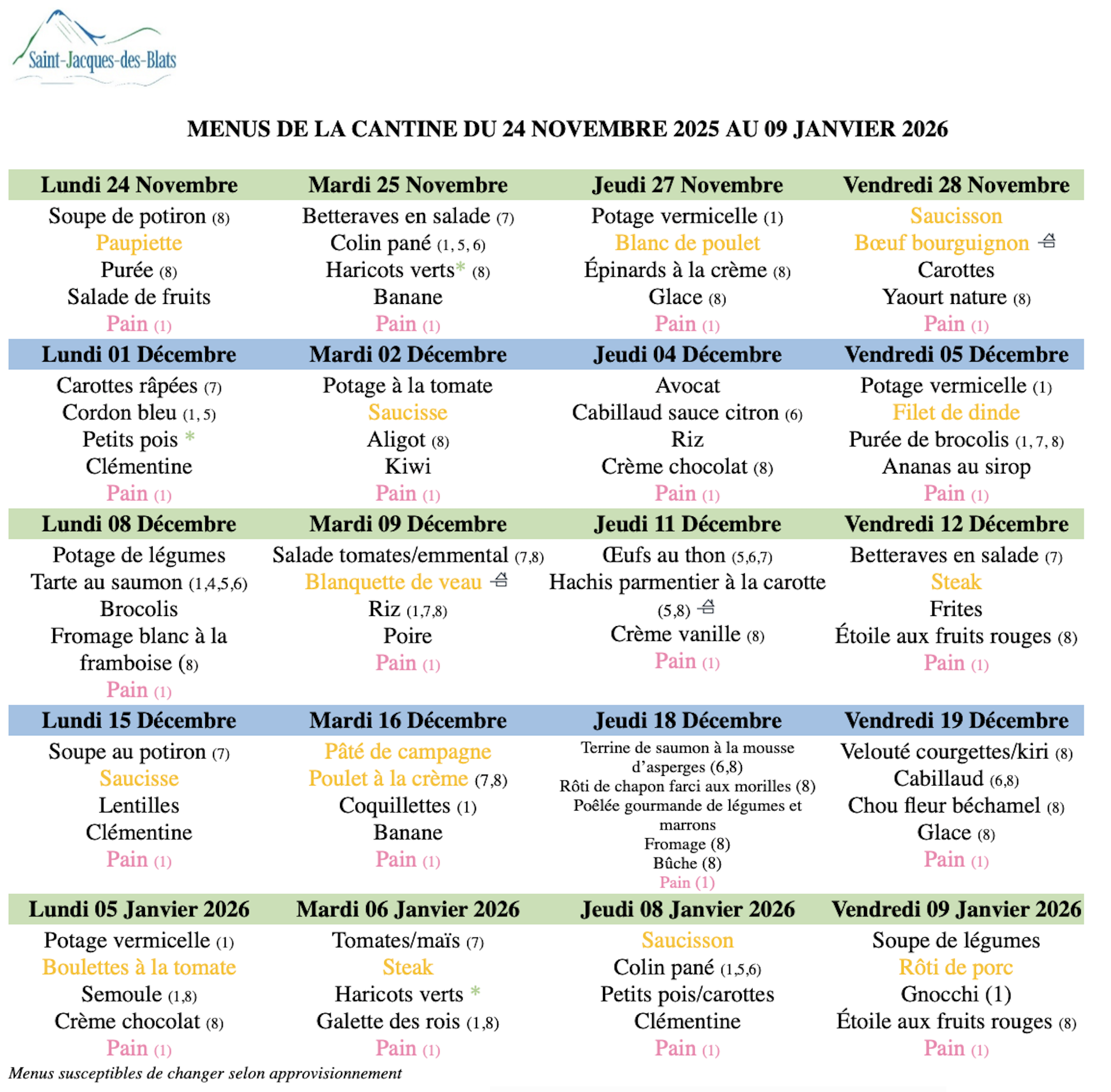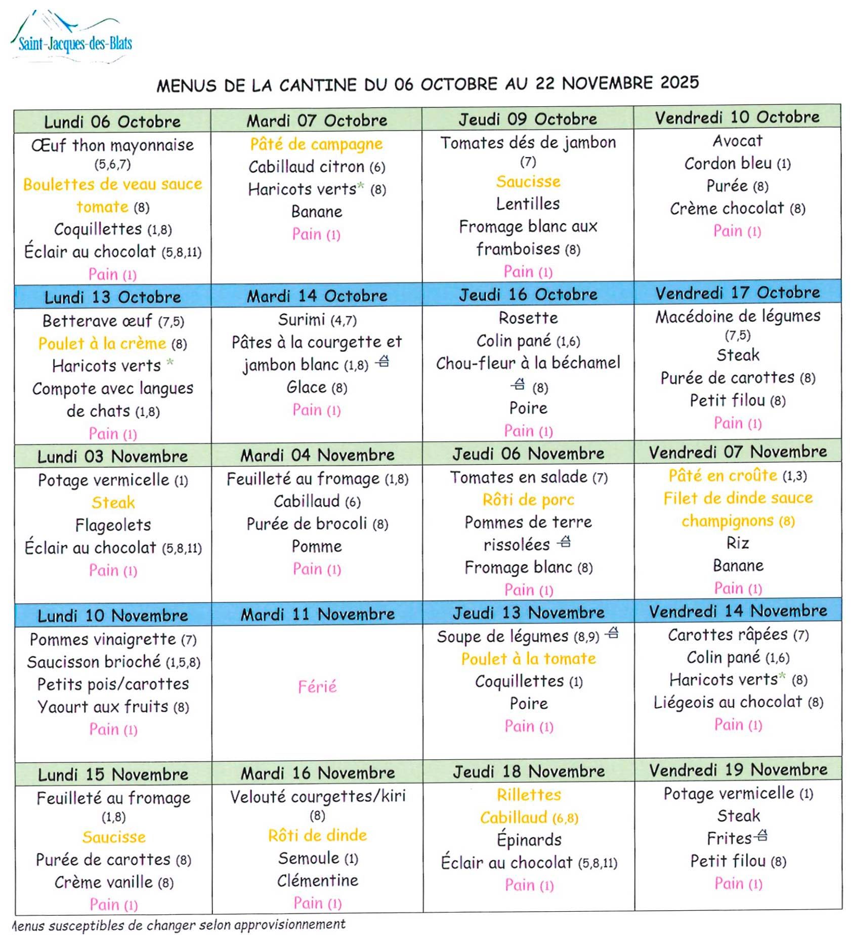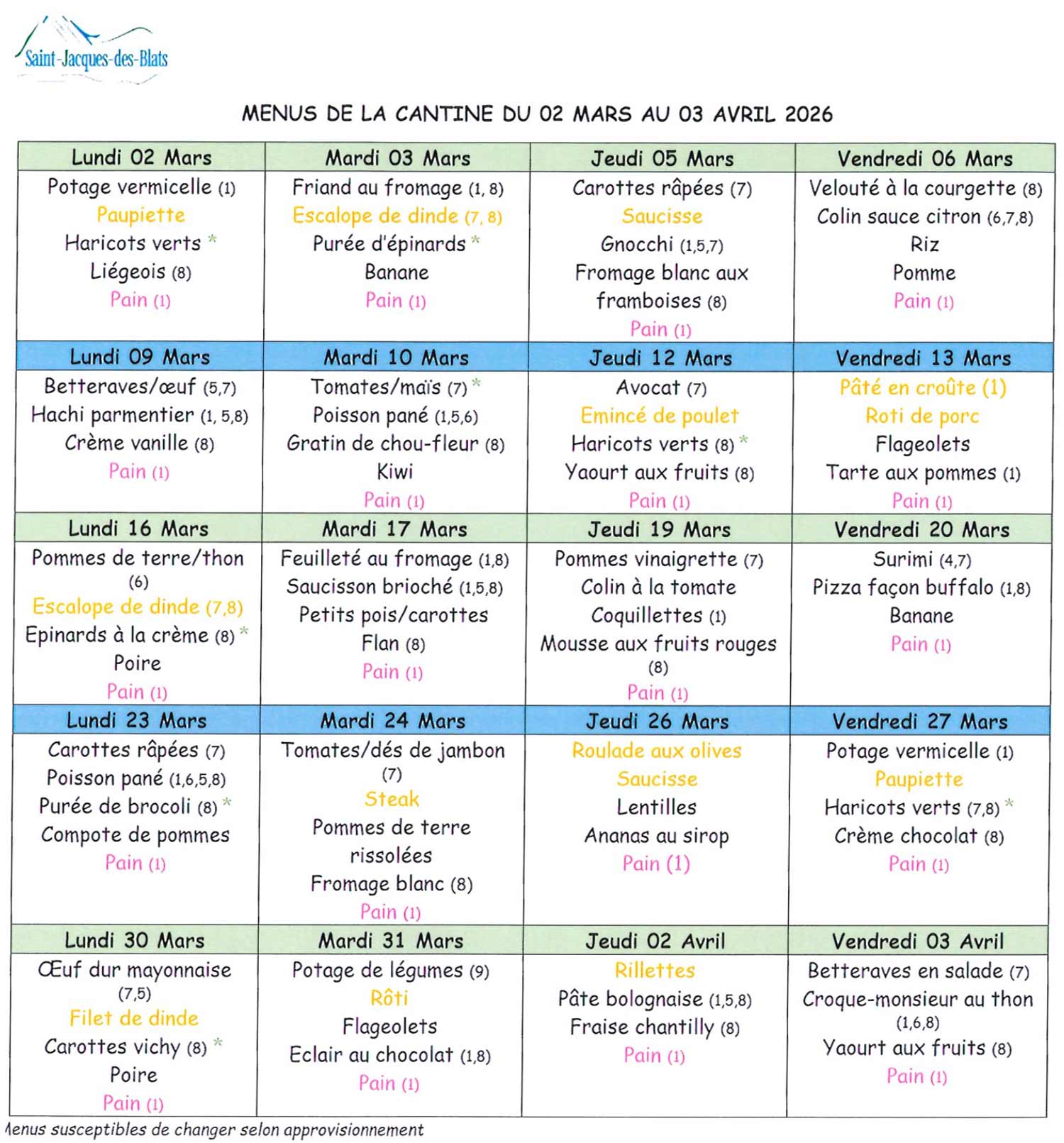 Retrouvez ici le menu de la cantine scolaire, semaine par semaine.
