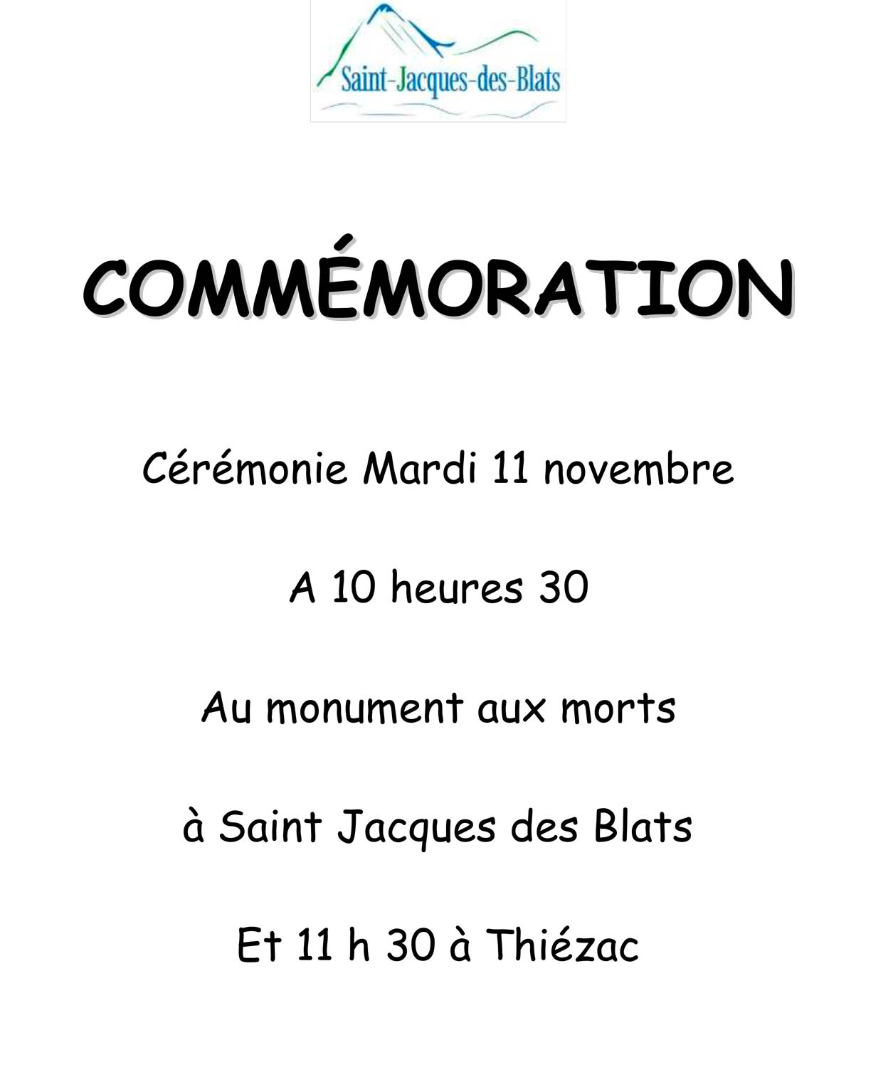 La commune de Saint-Jacques-des-Blats rendra hommage aux combattants morts pour la France à l’occasion de la commémoration de l’Armistice de 1918.