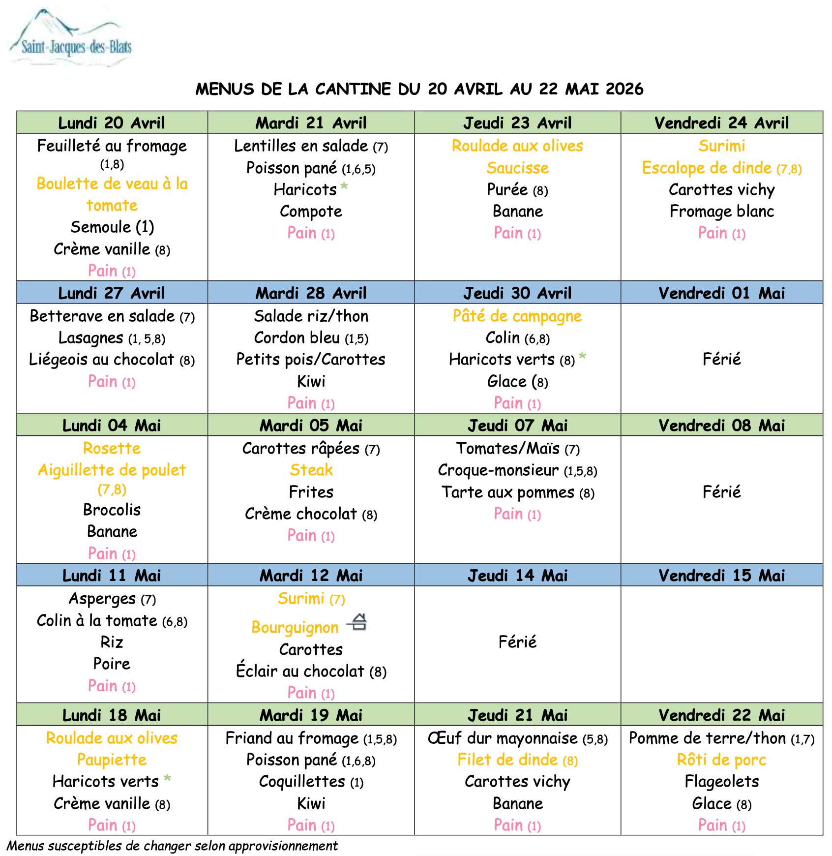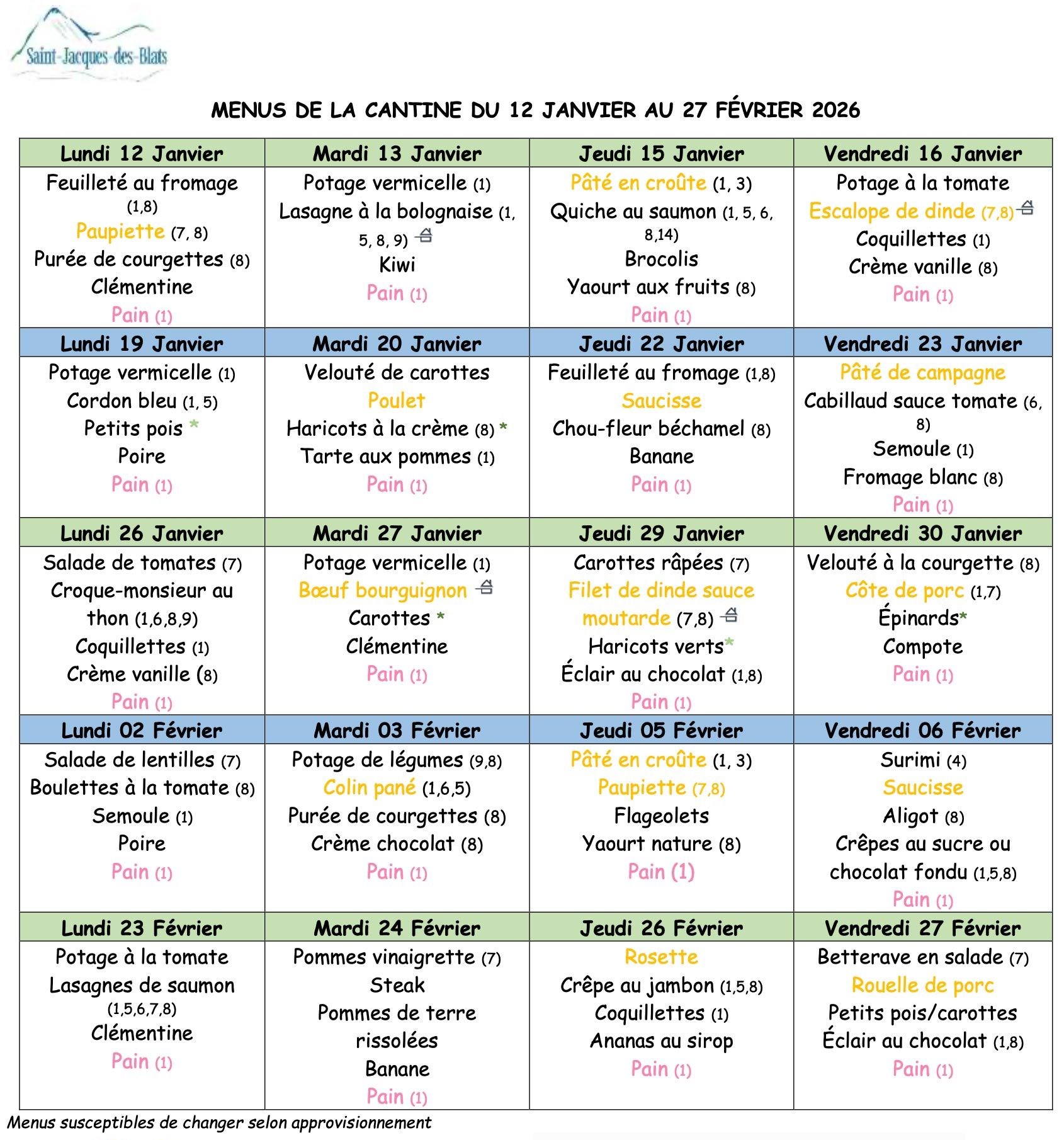 Retrouvez ici le menu de la cantine scolaire, semaine par semaine.
